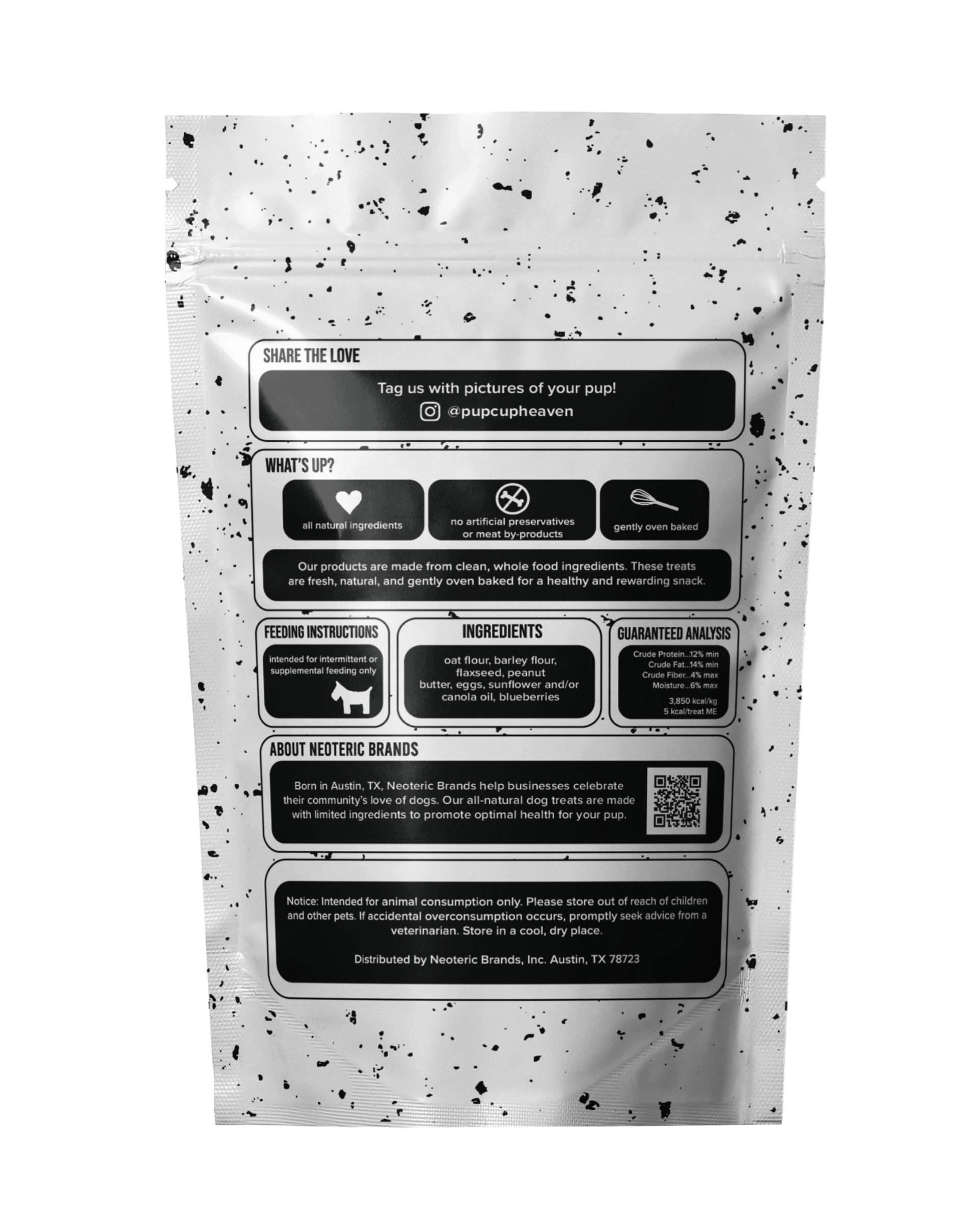 A tail-wagging blend of flavors your furry friend will adore! Made with creamy peanut butter and antioxidant-rich blueberries, these treats are not only delicious but also packed with wholesome goodness. Perfectly baked for a soft, chewy texture, they’re ideal for training, rewarding, or just showing your pup some extra love.