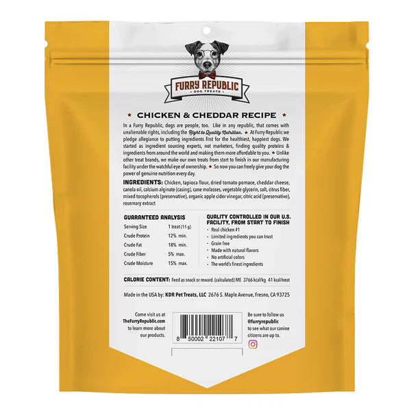 Chicken, potato starch, dried tomato pomace, canola oil, cane molasses, vegetable glycerin, salt, citrus fiber, gelatin, mixed tocopherols (preservative), organic apple cider vinegar, citric acid (preservative), rosemary extract