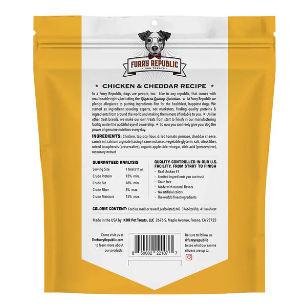 Chicken, potato starch, dried tomato pomace, canola oil, calcium alginate (casing), cane molasses, vegetable glycerin, salt, citrus fiber, gelatin, mixed tocopherols (preservative), organic apple cider vinegar, citric acid (preservative), rosemary extract
